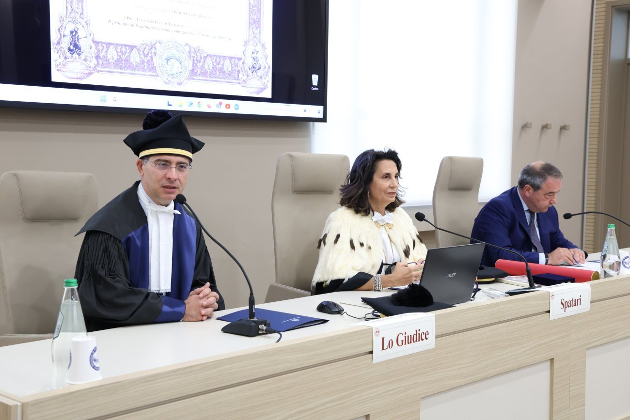 “Figura di primo piano nel panorama scientifico internazionale - ha sottolineato il prof. Ruggeri - il prof. Gascón Inchausti, che tra monografie e curatele vanta oltre 260 pubblicazioni, riceve il Dottorato di Ricerca Honoris Causa in Scienze Giuridiche per essersi distinto con le sue ricerche innovative e per il suo impegno costante nello sviluppo del sapere giuridico, con specifico riguardo al Diritto processuale non solo penale, ma anche civile, nonché nella teoria generale del processo. Tra i risultati più significativi conseguiti nel corso della sua carriera si annoverano i numerosissimi progetti finanziati dal Ministerio de Ciencia e Innovación, dal Ministerio de Economía y Competitividad, dal Ministerio de Educación y Ciencia, dal Ministerio de Ciencia y Tecnología, dal Ministerio de Educación y Cultura e dalla European Commission, nell’ambito dei quali il docente ha conseguito risultati di grande impatto applicativo che hanno contribuito significativamente al progresso sociale ed economico non solo in Spagna, ma anche nell’ambito dell’Unione europea”.